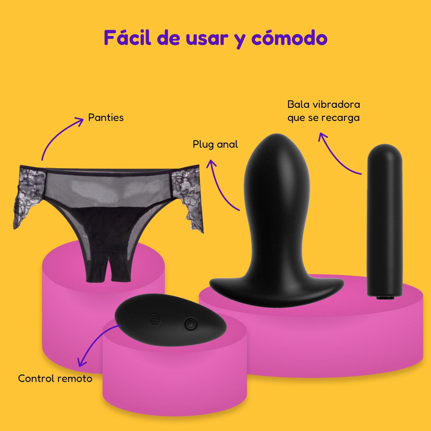 Estas pantys con encaje, bala vibradora y plug, serán tus favoritas porque, puedes usar el plug anal y sentir estimulación con tu caminar, es decir, activarás tu placer con tu propio movimiento, además puedes colocar la bala vibradora dentro de las pantys y así tendrás una doble sensación.